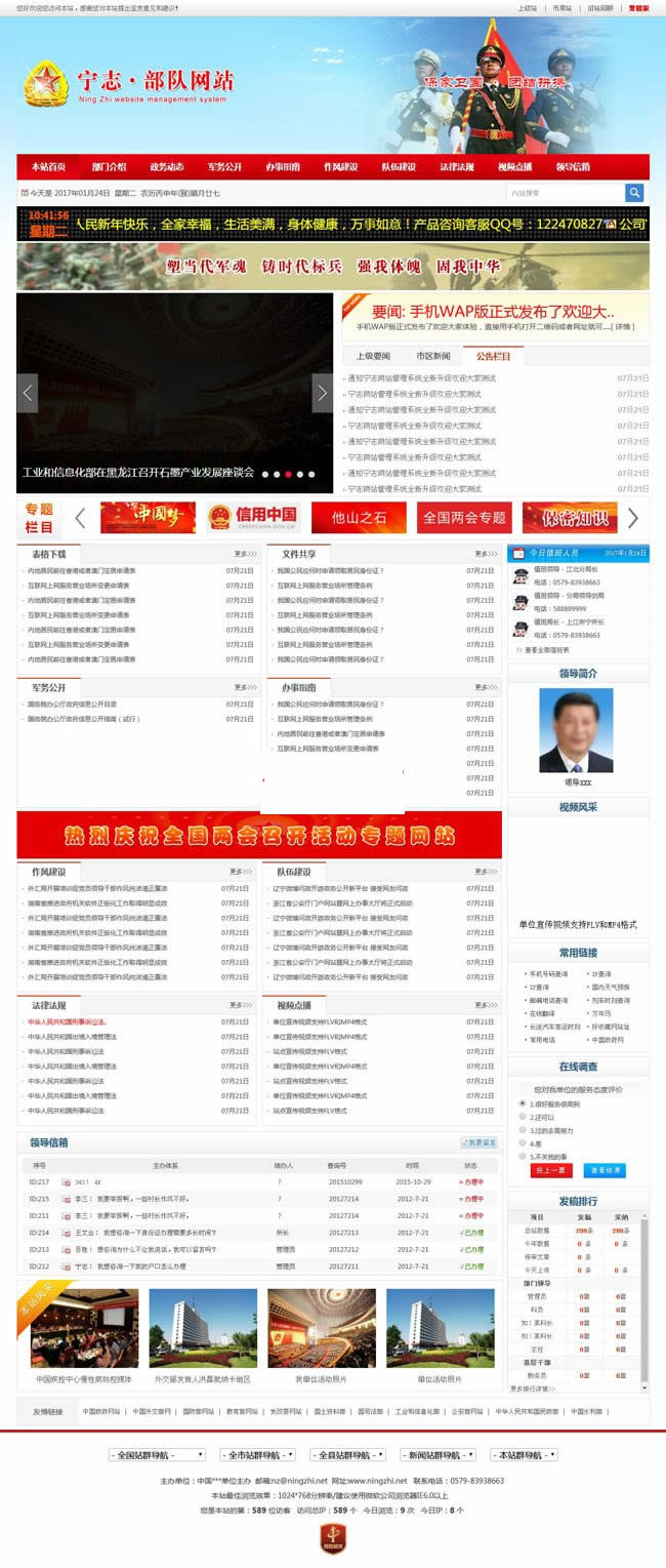 宁志部队网站管理系统一套专为军区部队建站首选的信息网站管理系统,大红色风格宽频页面十分大方。