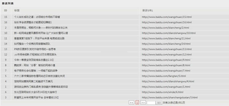 5、保存成功后,点击管理到推送界面,会显示当前所有文章列表,点击推送即可实时推送到百度资源平台。