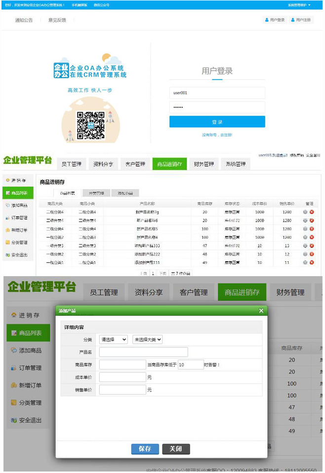 欢迎使用安信企业在线办公OA/CRM综合管理系统。系统包含了一般企业办公所需的通用管理功能: