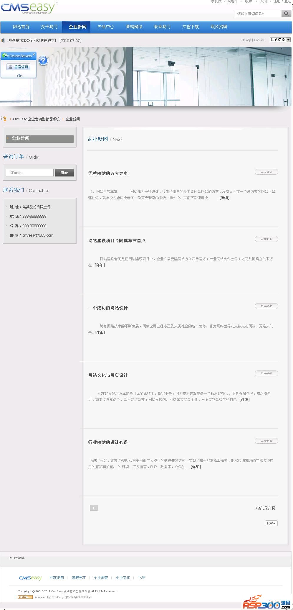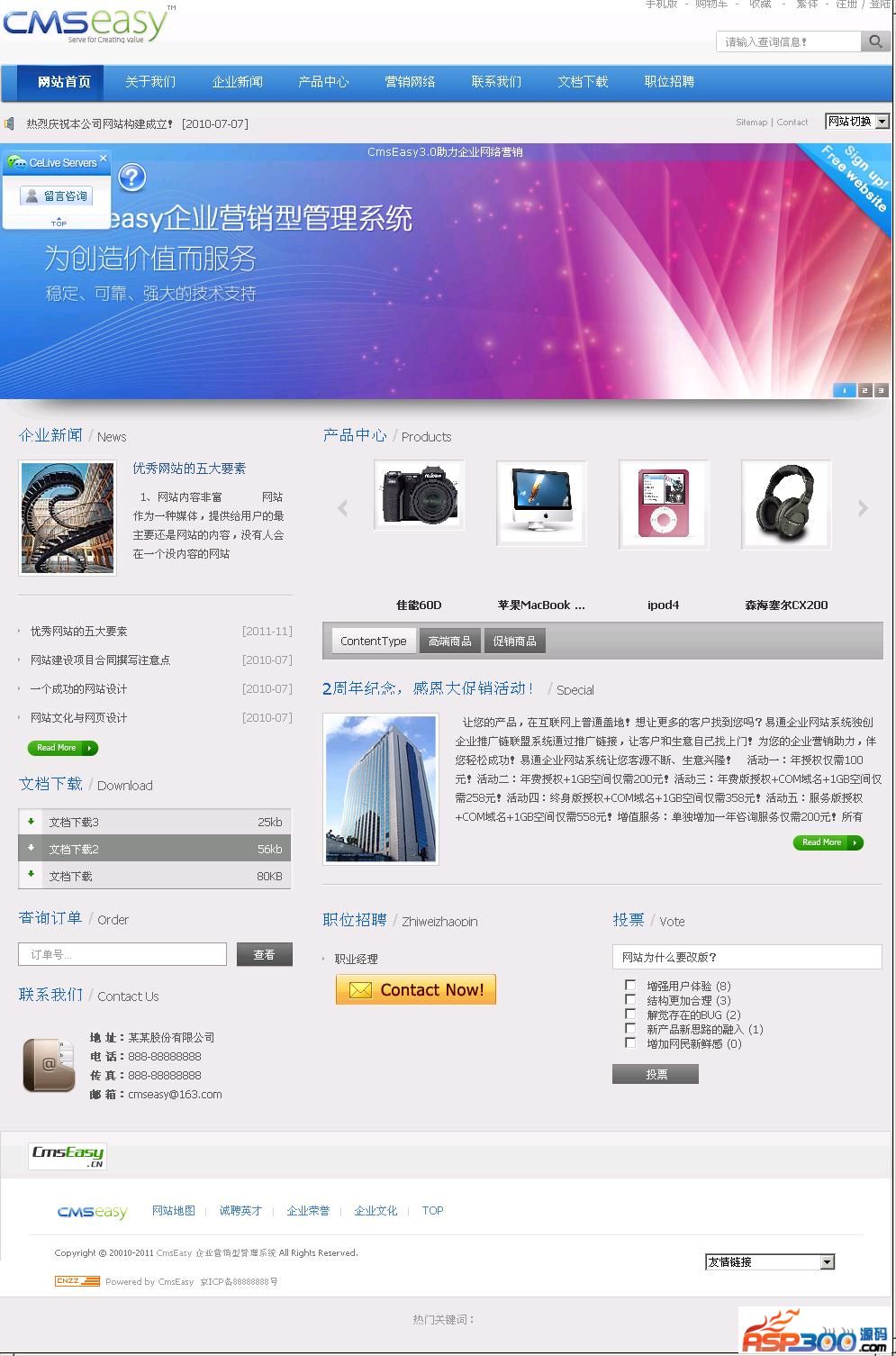 易通企业网站系统CmsEasy也称易通企业网站程序,是易通公司开发中国首套免费提供企业网站模板的营销型企业网站管理系统,系统前台生成html、完全符合SEO、同时有在线客服、潜在客户跟踪、便捷企业网站模板制作、搜索引擎推广等功能的企业网站系统。