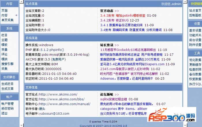 PHP各种版本(4.0*-5.*)AKCMS全部工作正常