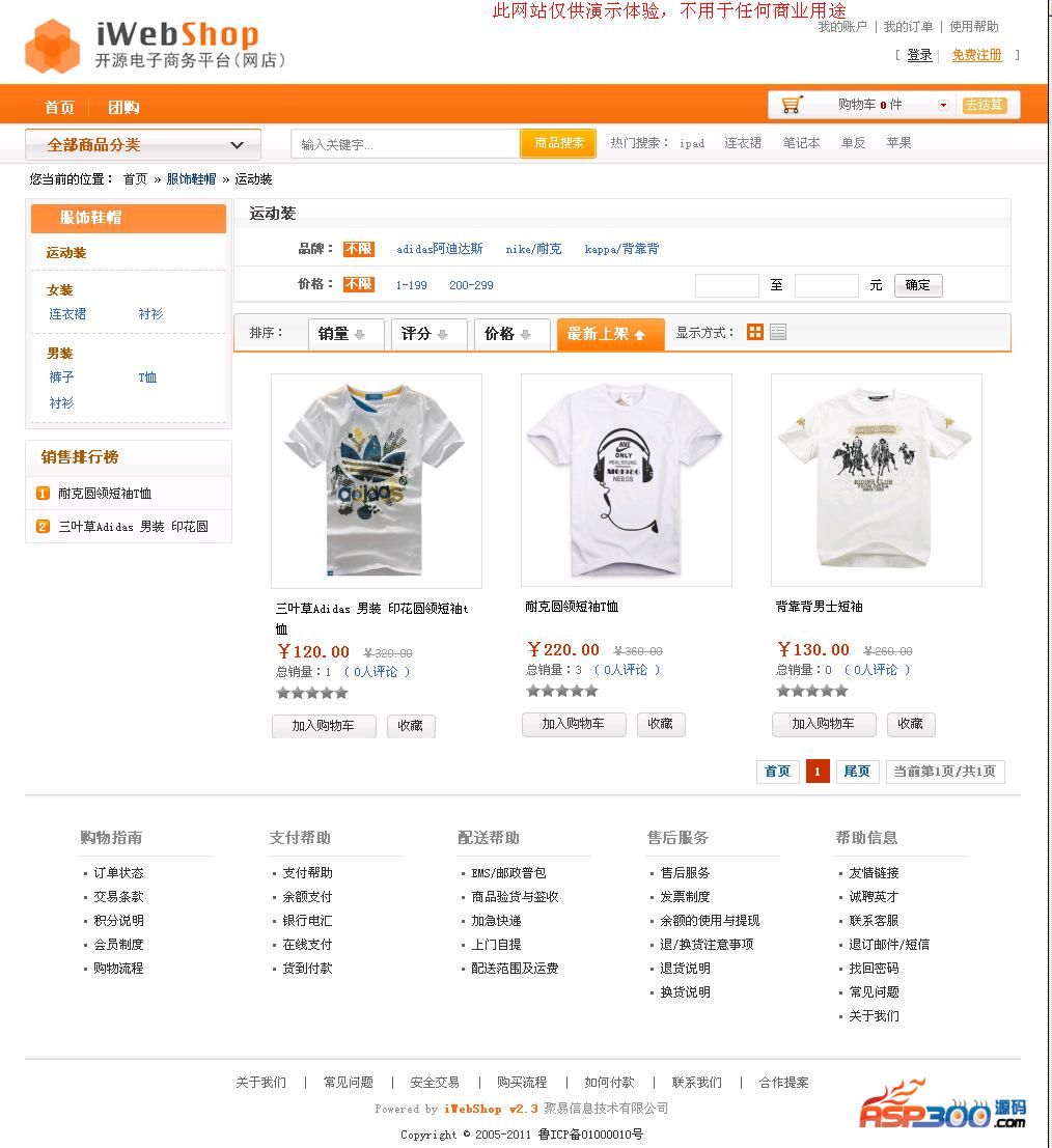iWebShop 是一款面向独立卖家的单用户开源网店系统,基于PHP+MySQL框架开发,通过它可以迅速建立起一个网上商城。基于框架开发,在获得技术平台库支持的条件下iWebShop可以轻松满足用户量级百万至千万级的大型电子商务网站的性能要求。站点的集群与分布式技术(分布式计算与存储负载均衡)被屏蔽在平台之内,基于iWebShopSI平台库扩展规范开发的新增功能模块,也将同时获得这种超级计算与处理的能力,作为开源的LAMP网店系统,iWebShop提供了一套轻量级的支持库,这使可以轻松部署在虚拟主机上或者单台服务器上iWebShop 2.3 新增功能