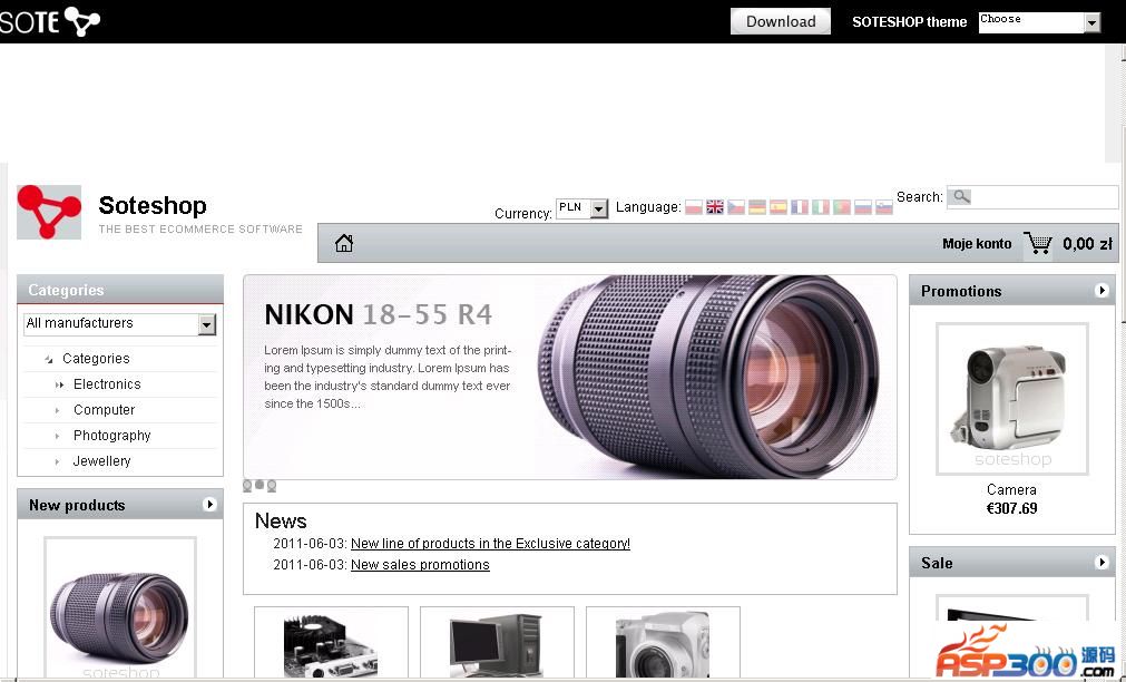SOTESHOP是免费的电子商务软件,包括所有高效地通过互联网销售的需要,程序在安装后立即启动和运行,管理整个购物过程,从商品演示,提交订单,到在线支付等等。 下载地址 下载地址已转移到新版网站,请点击左上角-首页,在新版网站搜索此套源码的标题进行下载。