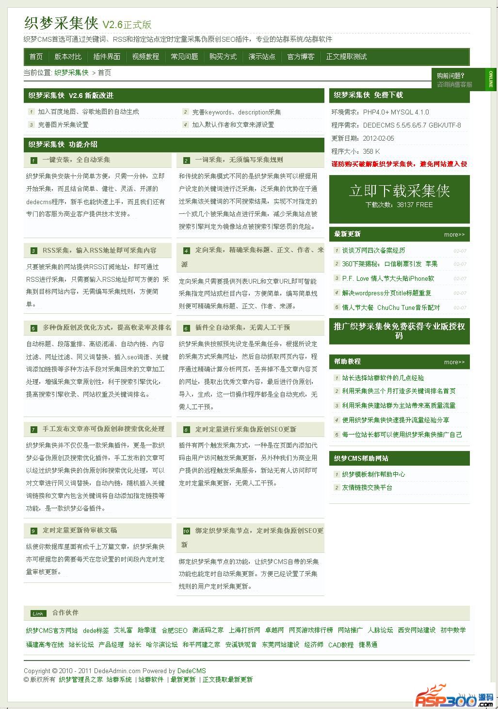 织梦采集侠安装十分简单方便,只需一分钟,立即开始采集,而且结合简单、健壮、灵活、开源的DedeCms程序,新手也能快速上手,而且我们还有专门的客服为商业客户提供技术支持。和传统的采集模式不同的是织梦采集侠可以根据用户设定的关键词进行泛采集,泛采集的优势在于通过采集该关键词的不同搜索结果,实现不对指定的一个或几个被采集站点进行采集,减少采集站点被搜索引擎判定为镜像站点被搜索引擎惩罚的危险。