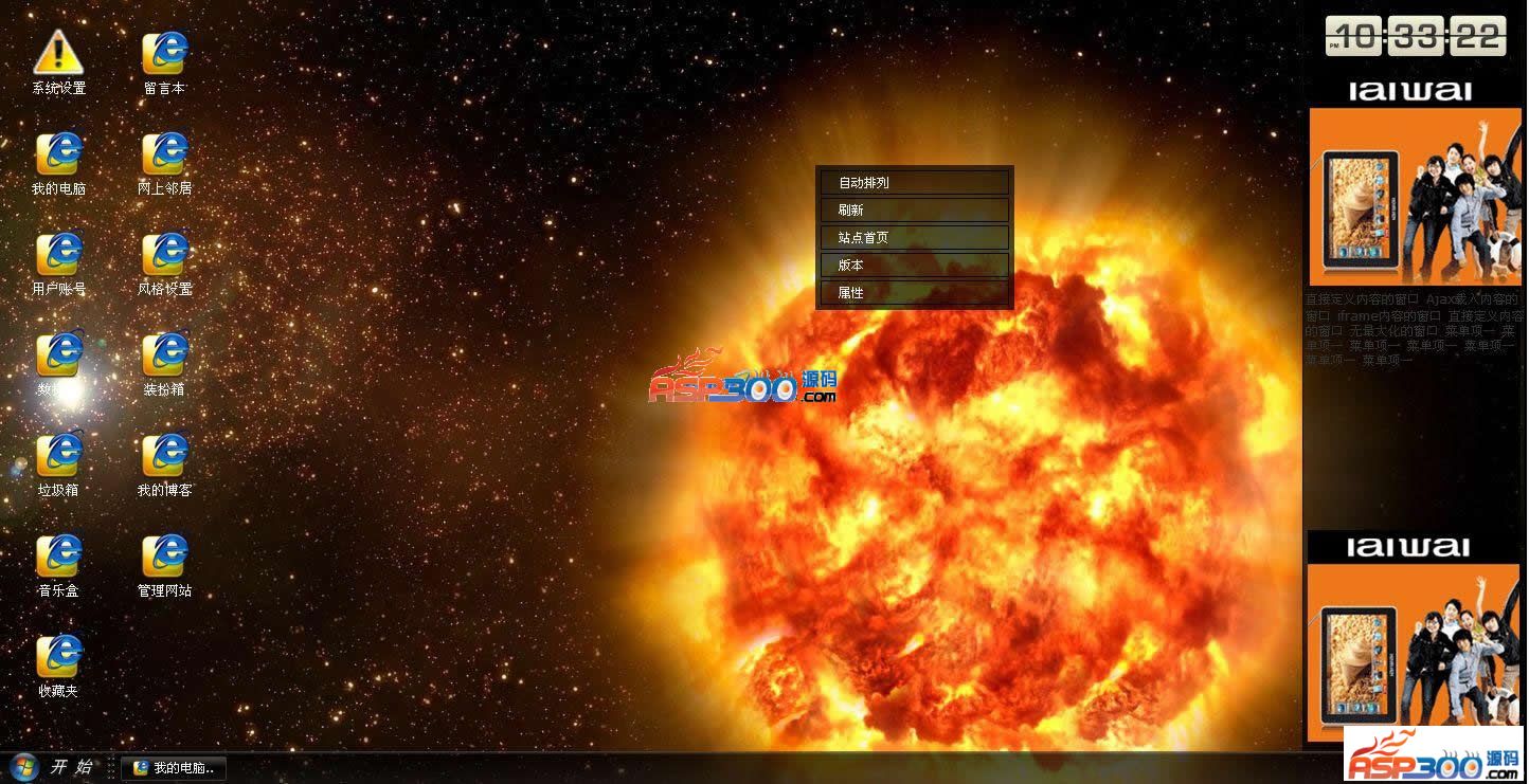 为了兑现诺言,今天(正月十五网上23点30分)将它发出来,其中可能还有一些瑕疵,我会慢慢改进,希望大家在使用的过程中有什么发现的话,告知于我,万分感谢,下一个版本 功能将更强大,而且我还会在桌面化的基础上,同时开发普通页面,网友可以根据自己喜好选择用桌面化方式浏览还是普通页面方式浏览。