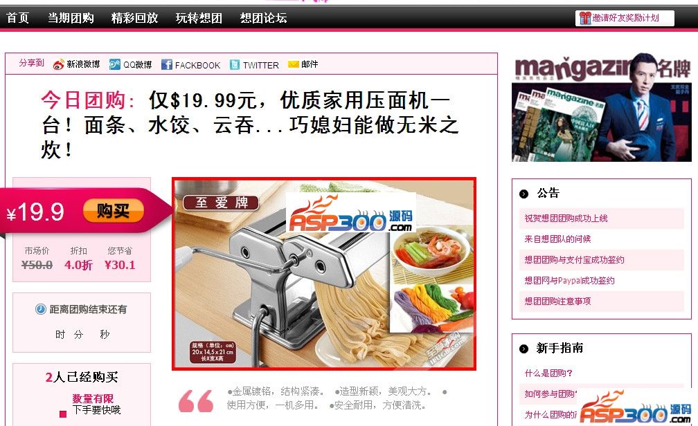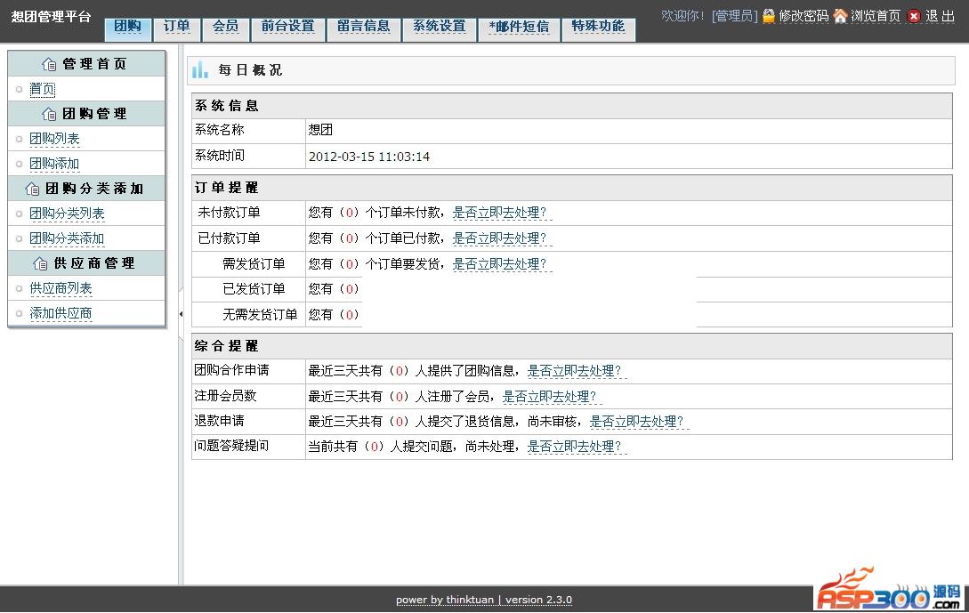 想团团购系统2.3.0是采用流行的php+mysql数据库构建,强大的后台控制功能,易用的前台订购流程。免费、开源,为您的团购网添加一把力!