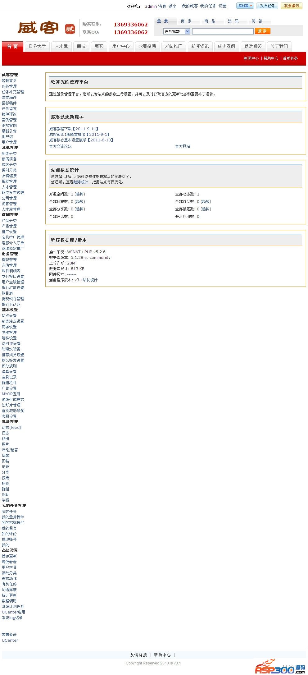 威客贰系统是国内领先的威客网站内容管理系统,基于PHP+Mysql架构开发。整合UCHOME系统,系统内容模块由:威客悬赏,招标任务,人才库,人才,招聘,新闻资讯,在线支付,发贴推广,案例示范等多种功能组成。
