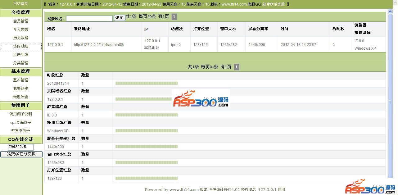飞虎统计能做什么:流量统计、流量交换、流量交换点击统计、购买流量统计、购买流量点击统计、广告位统计、广告位链接点击统计、友情链接点击统计、真假流量识别统计。您有所求,就是您所要。流量交换统计:电影站,图片站,娱乐站,为了取得更多流量,除了做好站,搞好内容,做好SEO,等搜索引擎源源不断的给您流量是站长最快乐的事情,同时与相同的站做流量交换是提高流量最佳的获取流量方式,也是流量快速增长的最佳途径。但与哪个站交换流量,换多少流量不是每个站长都能把握好,技术也是个难题,飞虎统计助您一臂之力。购买流量统计:很多站长购买流量选择广告联盟也是很好的途径,价格便宜,流量来得快,但广告联盟来多少流量是以广告联盟统计为准,且流量来到贵站,点击了多少次,点击了哪个链接,是真流量还是假流量也不能确定,一般大家的共识是购买搜索引擎竞价排名流量的质量好,但价格高,不过并非搜索引擎竞价来的都是好流量真流量,经验证明SEO关键字来的才是最好流量,没有利益别人不会费心思去搞假流量给你。但不是每个站长都有这个SEO的本事。直接与站长购买流量,流量质量参差不齐良莠难分,真假更加难辨。所以购买流量最关心的是来的流量质量如何,飞虎统计可以给您一个明明白白的购买流量过程,需要什么样的流量让您心中有数。广告位统计:也许您需要在您的站加些广告链接或在别人的站上放您的广告或链接,广告效果也是您最关心的问题,上了广告是否有点击,点了哪个链接,放的哪些标题链接更吸引人,点击量更多效果更好,飞虎统计帮您汇总。友情链接点击统计:做了友情链接,您是否想知道从他的友情链接来了多少次,对方的链接又被点击了多少次,也许您也想需要了解,这不难,一般的流量统计都有这个功能或者您的网站CMS系统也有这样的功能,但友情链接所放的位置,从哪一个友情链接过来,对您的网站哪一些内容更关心,这是飞虎统计需要做的事情就是点击统计。真假流量统计:这是一个难题,道高一尺魔高一丈,您有好的对策别人也有好的应付方法,只要有利益在,什么事都可能存在,除非做的是CPS,您站有商品,付款给货,最直接的效果。不管是做流量交换也好,购买流量也好,还是友情链接也好,甚至做的是CPA,CPS真假流量都有可能不约而来。有没有办法区分出真假流量来呢,当然有,但也不是绝对,只要与众不同,真假流量就会现形,飞虎统计就是给您一个识别的汇总工具。与真假流量较上劲源自一次竞价排名,一样的关键字,在两个不同的搜索引擎投放,一个效果不错,一个效果很差,一个意外的统计发现,效果差的90打开窗口大小的高度与宽度都是0,这才明白竞价的流量也不是那么安逸。这已是好多年的事了,现在做假流量的也已升好多级了,所以购买流量时更需要多练慧眼。