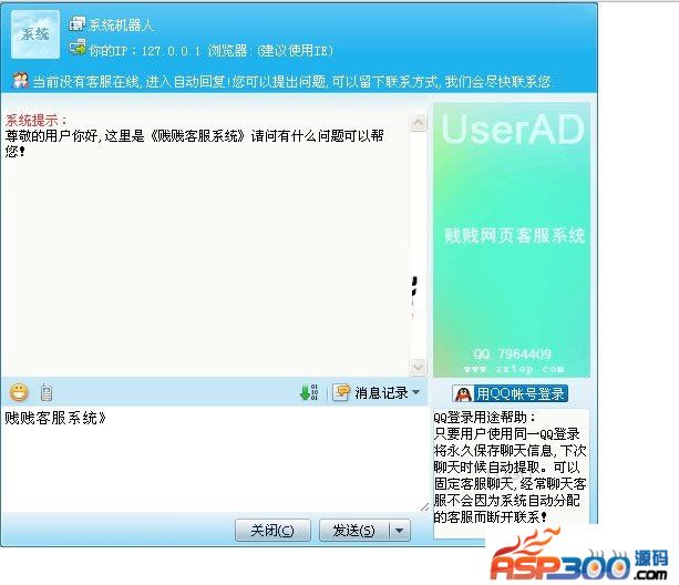 QQ登录,QQ登录后可以保存聊天记录,下次登录自动提取上次聊天记录!
