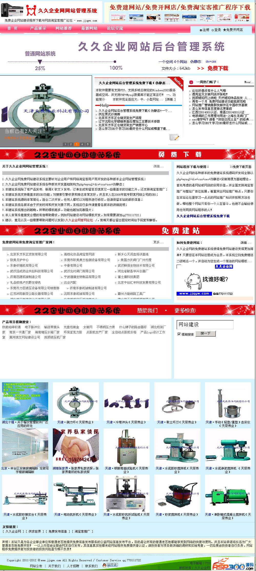本软件完全适应大、中、小型网站建设需要,让您用很便宜的虚拟主机空间也可以开通4个独立的网站!久久企业网站后台管理系统各种版本开发基础架构均为php+mysql+div+css+伪静态,迎合搜索引擎排名的喜好。另外值得一提的是本站特色的TAG系统可为您的网站做出无限分类,不用任何设置全站ULR伪静态!本建站系统除了有产品发布、新闻(软文)发布、订单管理系统和留言反馈等一些最基本的功能之外,还支持自定义广告和淘宝客推广,尽量让你利益最大化。另外,本软件功能全,开放源码,无后门,初始化状态的压缩包才640KB,稍后我们还会推出更多网站模板供大家免费使用。