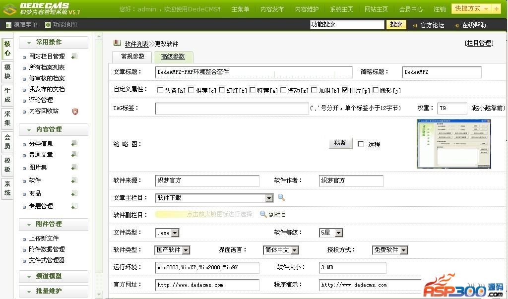 织梦CMS(DedeCMS) 5.7 GBK SP1 20130607 更新记录: