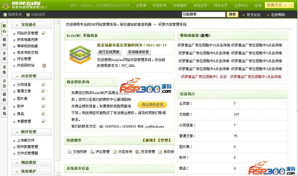 织梦CMS(DedeCMS) 5.7 UTF8 SP1 20130607 更新记录: