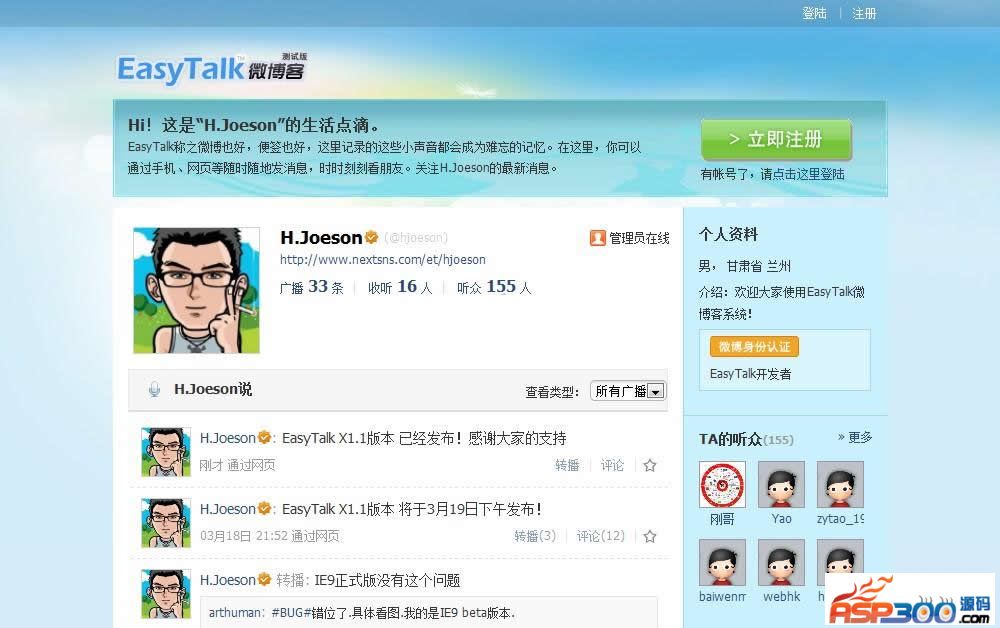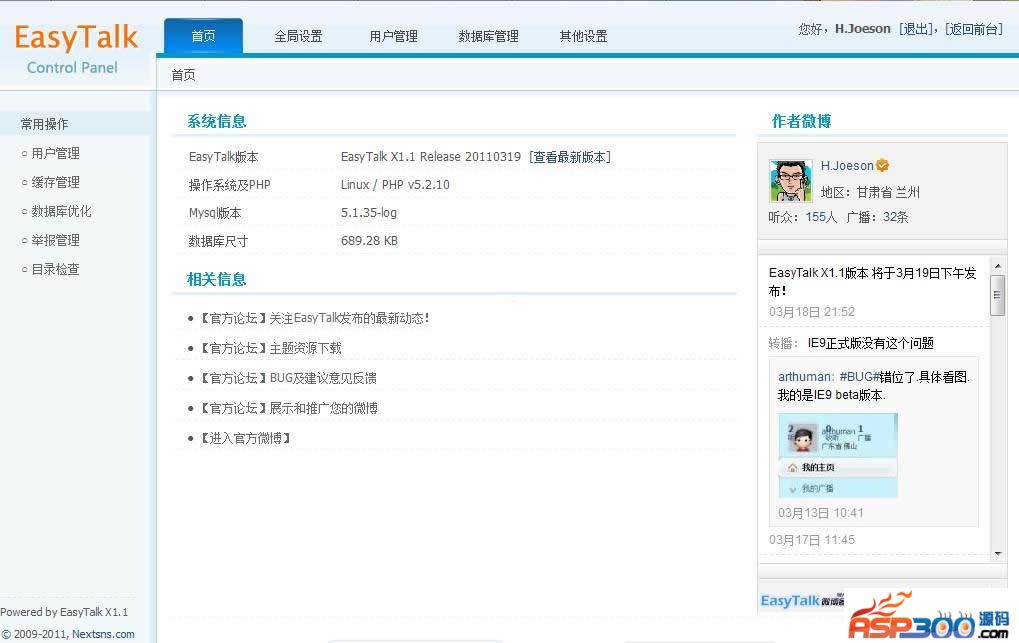 EasyTalk是国内首款多用户PHP+Mysql开源微博客系统,支持网页、手机等多种方式发表和接收信息,EasyTalk全面符合国人的上网习惯,真正轻量级架构,使得使用者上手容易,管理者安装部署容易、管理便捷。EasyTalk功能强大,可二次开发性高,人性化的模板自定义功能大幅提高了用户的体验,因此EasyTalk相比国内其他微博客软件有绝对的优势!EasyTalk微博集成了Ucenter模块,可与所有集成该模块的系统(比如Discuz、Ecshop等)进行无缝整合,完美实现用户同步注册、登陆、退出,同步上传头像,同步修改密码,让网站已有用户轻松使用。[EasyTalk X2.2.1更新日志]