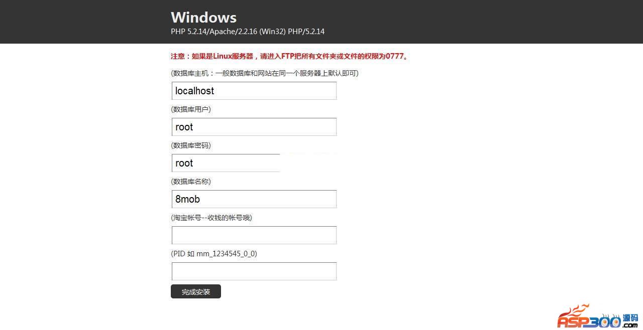 填写好数据库信息