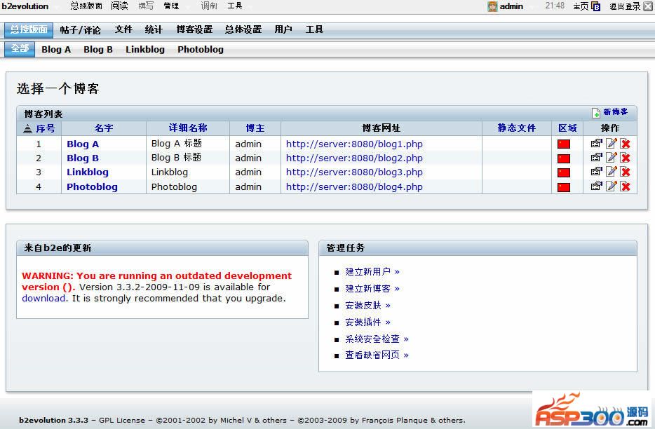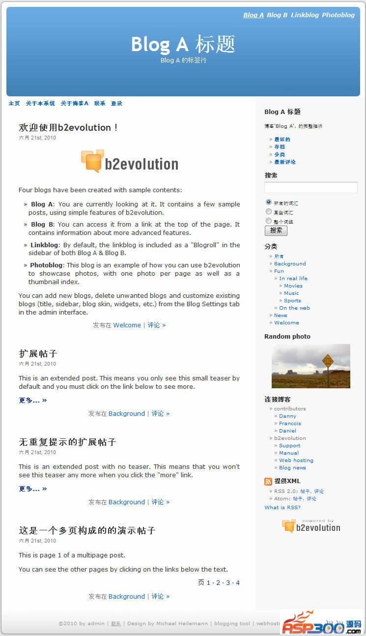 b2evolution是一个采用PHP+MySQL开发的,成熟的,优秀的Blog引擎。它包含了一个Blog工具所应具备的所有功能。