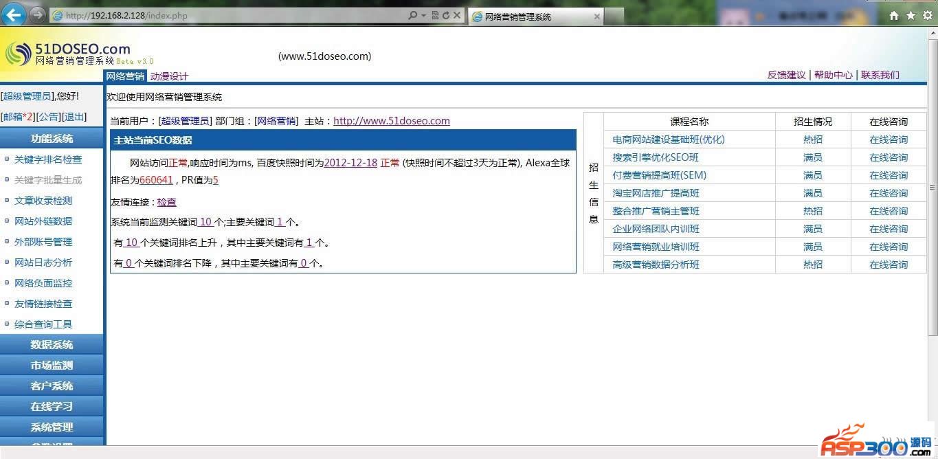 1.站内邮件、公告 2.关键字排名检测(一个主站排名和多个竞争站排名)