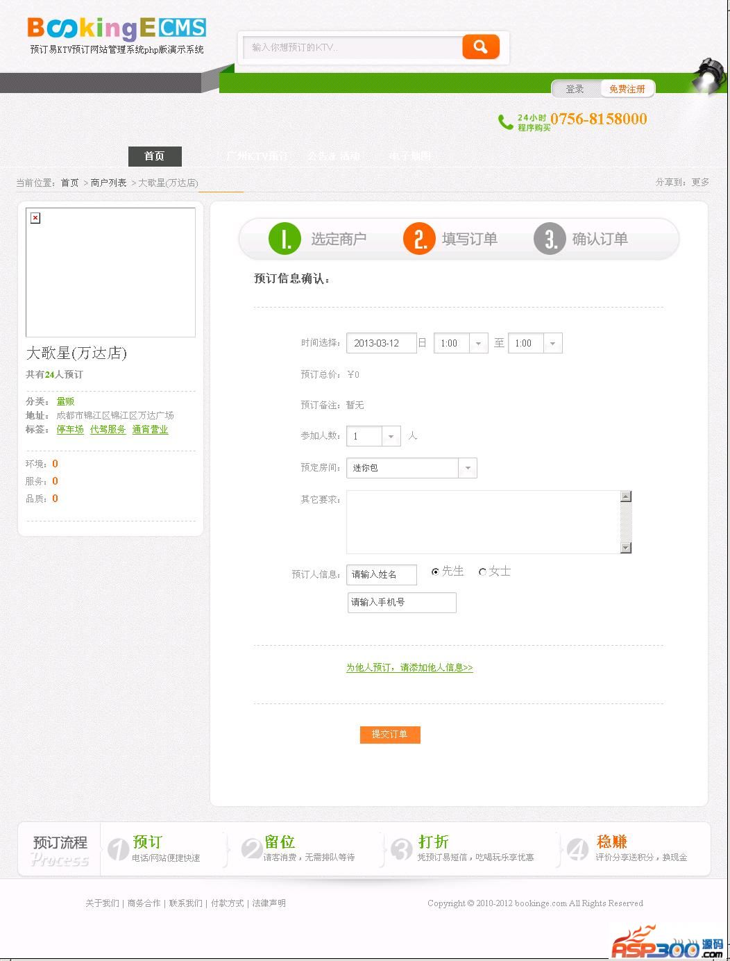 BookingE KTVCMS 全名:预订易KTV预订网站管理系统,是由珠海中新信息科技有限公司全资开发的首个“KTV预订为主题的CMS建设系统”。中新网络地方电子商务建站代表作BookingE HotelCMS。