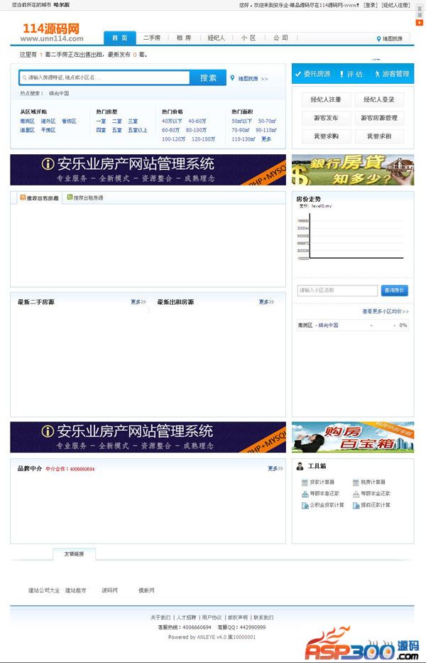 源码介绍:这是一套以PHP+MYSQL开发的房产网站管理程序,支持伪静态,带地图搜房,栏目设有:二手房、租房、新房、经纪人、小区信息、公司等。
