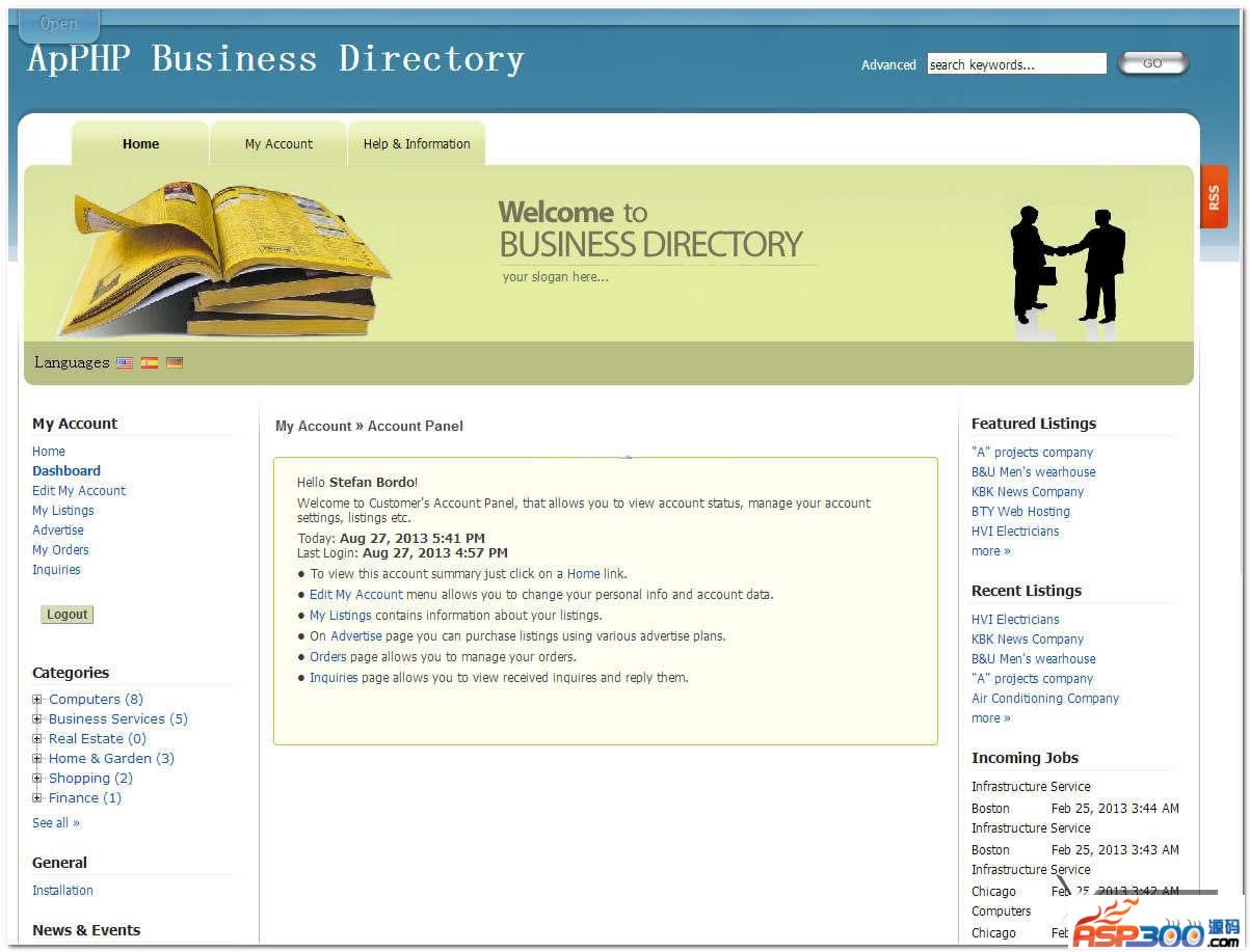 ApPHP商业指南为您提供所有功能,你需要设置自己的域名,自己的电子商务目录网站。我们为您提供所有的东西,你需要一个成功的网站,如:上市管理,搜索引擎友好的网址,数据库备份,先进的文本编辑器,横幅轮换制度等,所以它是很容易开始自己的成功的目录网站。