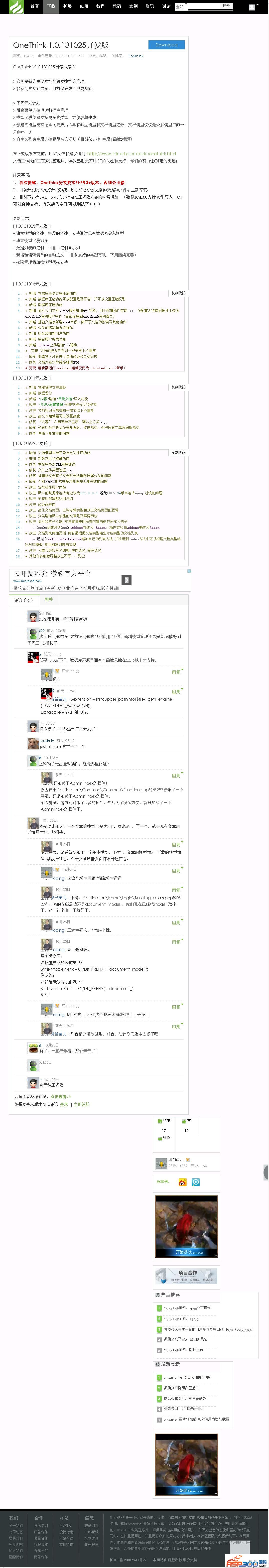 OneThink V1.0.131025 开发版发布这周更新的主要功能是独立模型的管理涉及到的功能很多,目前仅完成了主要功能下周开发计划后台菜单支持通过数据库管理模型字段创建支持更多的类型,方便表单生成创建的模型支持继承(完成后不再有独立模型和文档模型之分,文档模型仅仅是众多模型中的一员而已!)自定义列表字段支持更复杂的规则(目前仅支持 字段|函数:标题)注意事项: