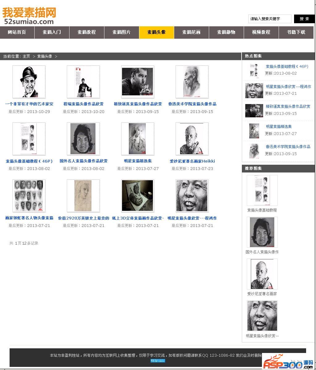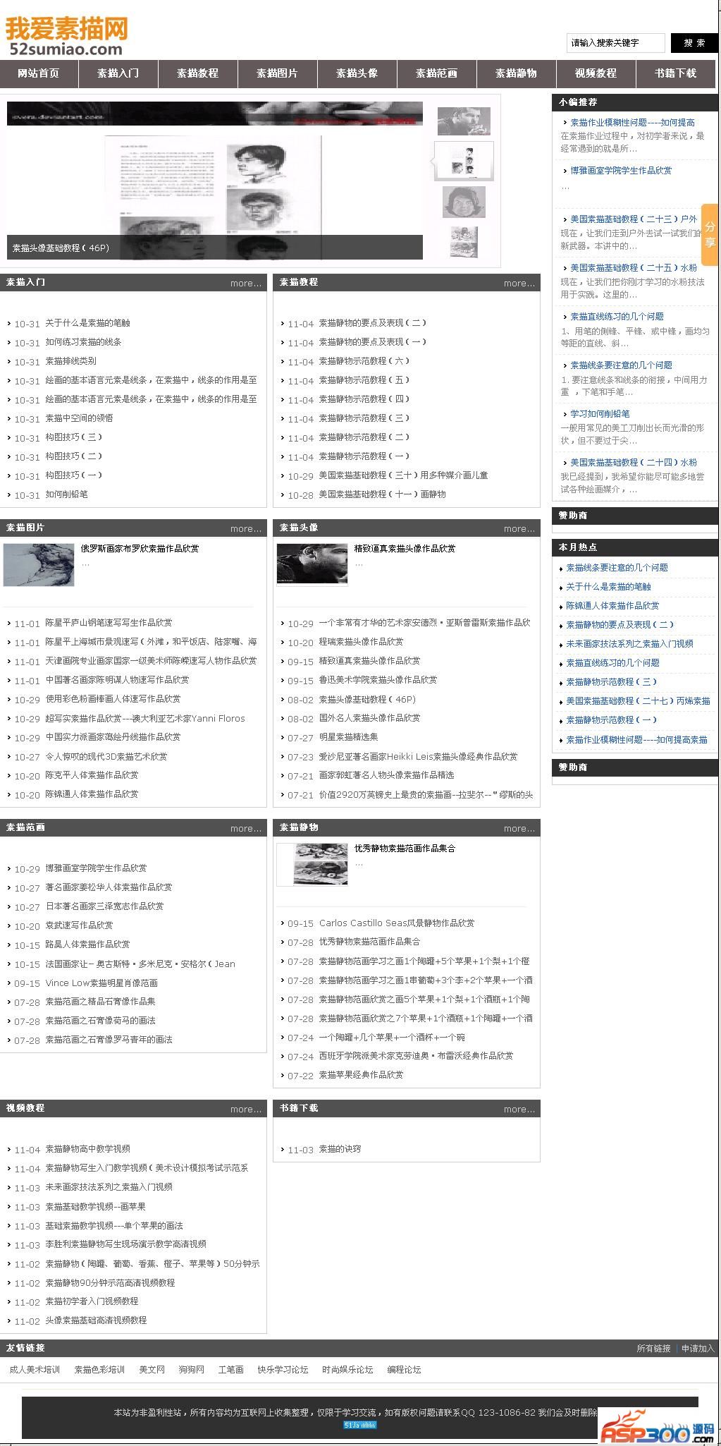 主要包含页面:首页、素描图片、素描教程、素描入门等栏目模板适合做素描、手绘、美术、书法、石器、玉石、艺术品、图片、qq、培训等网站内容。
