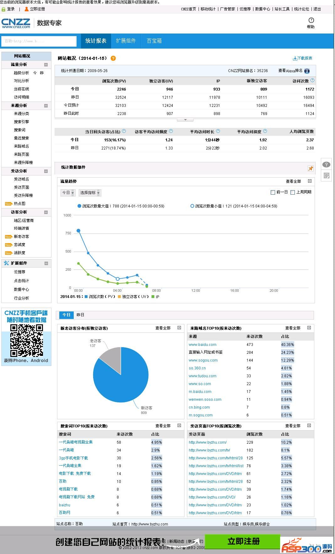 CNZZ站长统计的优势:1、数据0延时,数据精准科学2、保留7日完整浏览明细3、提供页面热点图,可视化展现访客点击行为