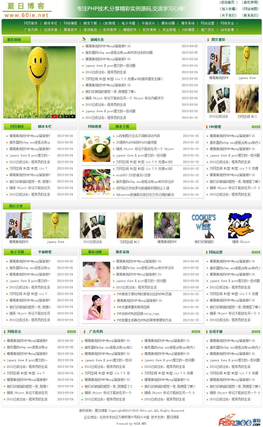本程序是夏日php+mysql新闻管理系统,由夏日博客独立设计完成,前台页面美观,后台程序精简,整体源码结构非常简洁,可以进行后台独立管理。现最新版本为1.2,满足基本新闻系统的要求。