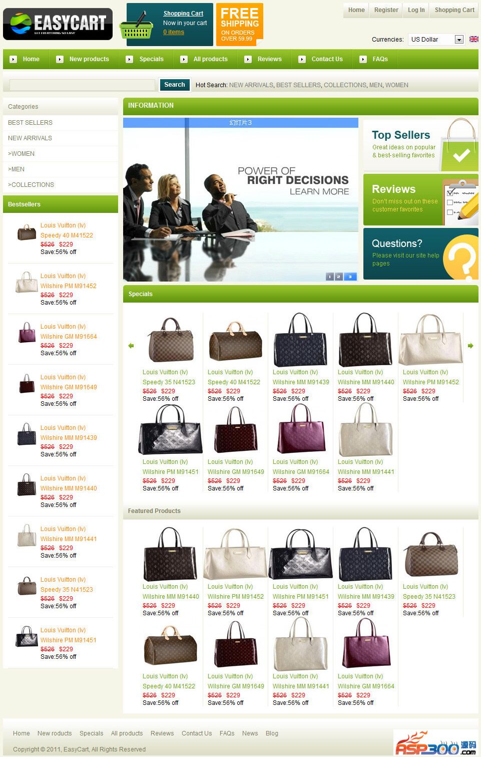 EasyCart是基于ThinkPHP框架上开发的新一代PHP开源免费外贸网店系统,目前最新版本是3.0RC1!