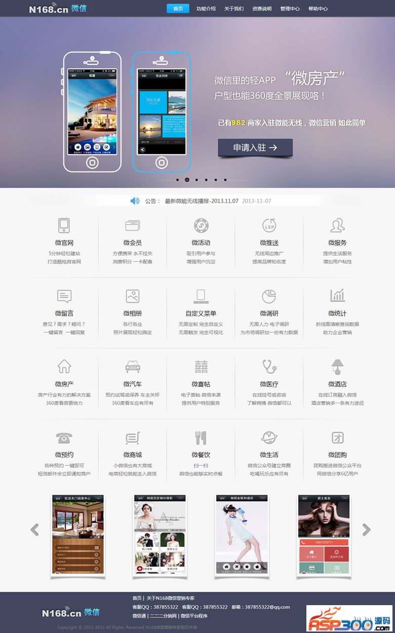 微官网:栏目首页模板风格(包括71套全新模板)、频道模板风格(17套频道)、列表模板风格(13套)、详细页模板(5套)