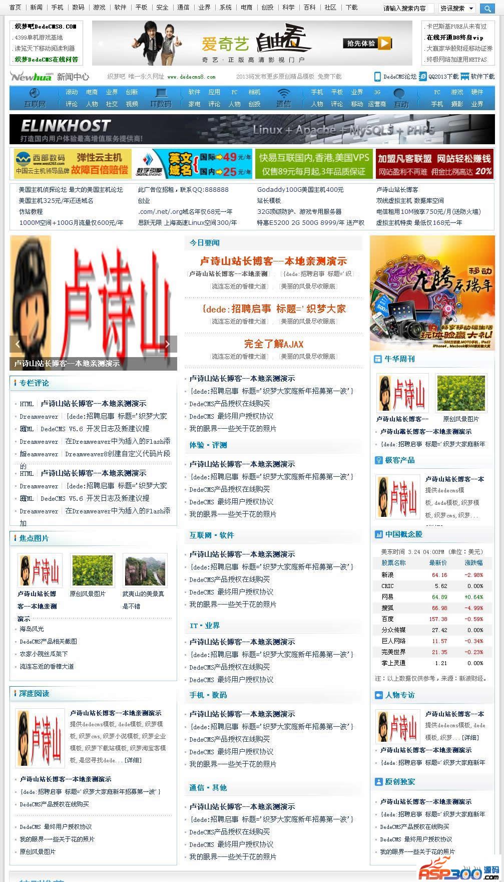 仿newhua资讯门户模板演示站有些空链接,只仓促建了几个栏目,但是不影响模板的使用!已经增加了列表页和内容页!软件列表页、软件页、搜索页、tag标签首页、taglist页、单页(关于我们等类)、网站地图、友链页面、留言本等页面的模板文件视情况而定, 如果回复的人多,就抽时间仿下来分享;如果喜欢的人不多,其他页面做出来也没意义,就只发布首页、列表、文章页,望大伙见谅!