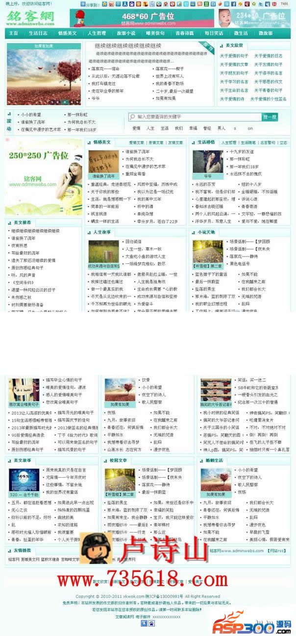 安装方法:将mingke和img放到templets文件夹下,然后在网站后台选择mingke为默认模板更新网站就好。只有三个页面,首页index,文章列表页list_article.htm,文章内容页article_article.htm广告位已经预制好,大家在代码区更换相应代码就行。