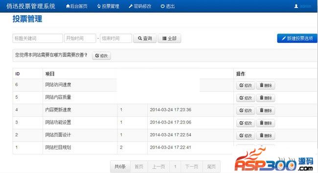 1、俏迅VMS能够方便的管理多个页面不同类型的多个投票;