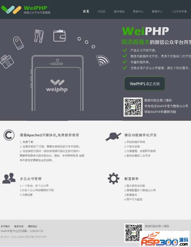2、开源免费,weiphp遵循Apache2开源协议,免费提供使用。