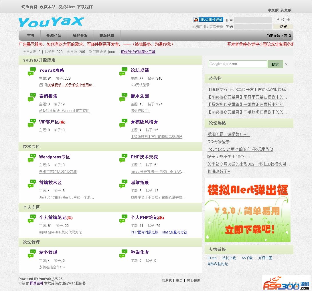 YouYaX,开源BBS,php原创框架结构论坛程序 YouYaX是个人自主开发的原创论坛系统,简洁,拓展性强,代码开源。