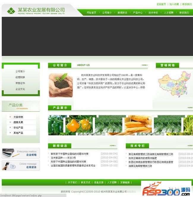 农业发展公司网站系统模块包括:基础功能模块,企业招聘模块,留言反馈模块,产品展示模块,图片展示模块,新闻文章模块。