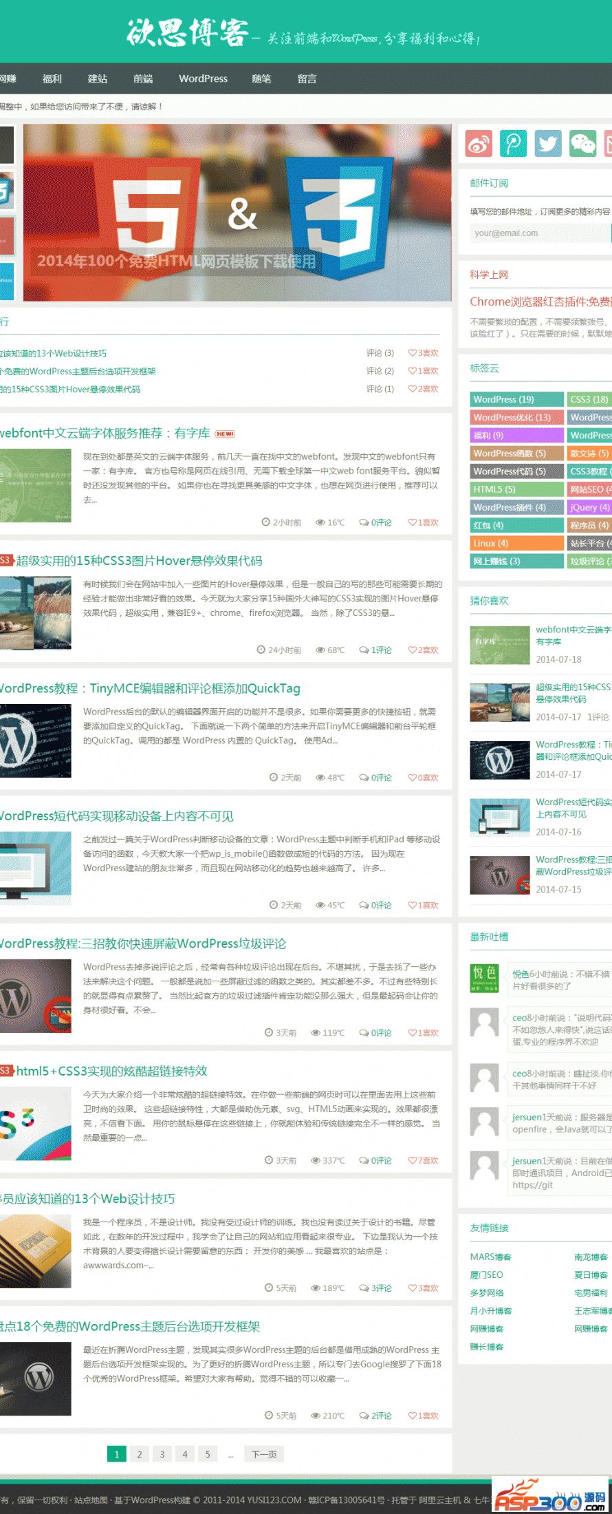 这是一款WordPress 扁平化+响应式式主题,支持 WordPress 3.8 及以上最新版,兼容 IE9+、Chrome、Firefox 等主流浏览器。部分浏览器不兼容一些新特效,请使用现代浏览器!
