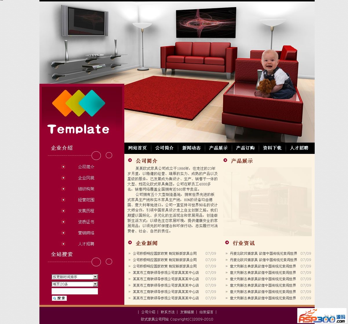 欧式家具公司企业网站源码预装软件模块:基础模块,企业招聘模块,留言反馈模块,产品展示模块,文件下载模块,图片展示模块,新闻文章模块,企业留言模块等。