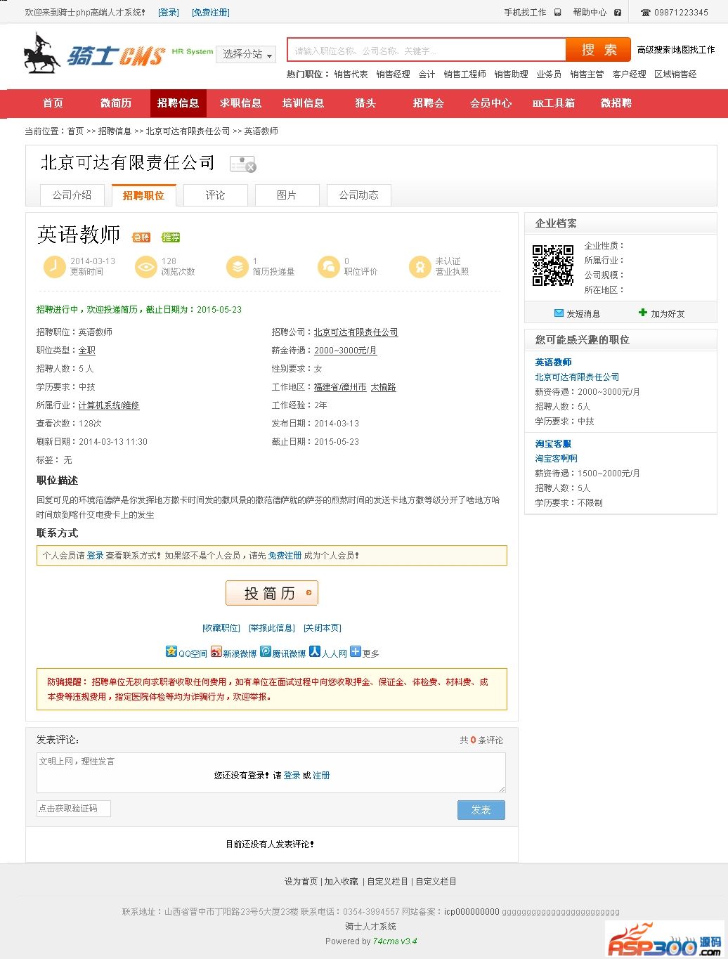 骑士人才系统是一项基于PHP+MYSQL为核心开发的一套免费+开源专业人才系统。软件具执行效率高、模板自由切换、后台管理功能方便等诸多优秀特点。凭借骑士网络的不断创新精神和认真的工作态度,相信骑士能够为您带来全新的使用体验!