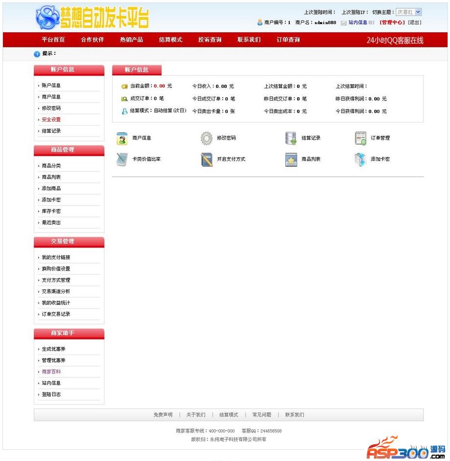 程序介绍:支持双层客户登录系统:商家登录系统和买家登录系统商家系统:是商家在平台销售卡号卡密买家系统:商家支付链接必须买家登录才可以购买伪静态、安全增强、优惠券、邮件提醒、API 直充、手机版 Web程序集成支付接口:支付宝双接口、支付宝免签约接口、财付通转接接口、网银转接接口、卡密转接接口程序支持为商家推广商品:在总后台添加商品名称,商品链接以及商品价格