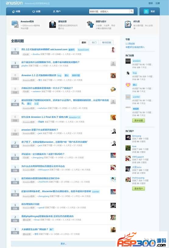 Anwsion 是一个类似知乎以问答为基础的完全开源的社交网络建站程序,基于 PHP+MYSQL 应用架构,它集合了问答,digg,wiki 等多个程序的优点,帮助用户轻松搭建专业的知识库和在线问答社区。 下载地址 下载地址已转移到新版网站,请点击左上角-首页,在新版网站搜索此套源码的标题进行下载。