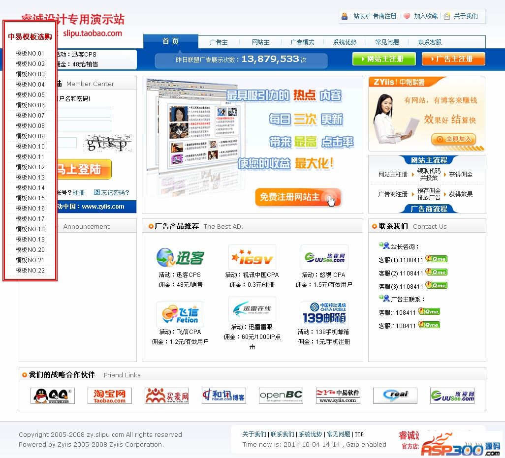 源码介绍:精品广告联盟,中易3.31官方商业破解无限制版+四套模板,太极,大红,橙色,红色