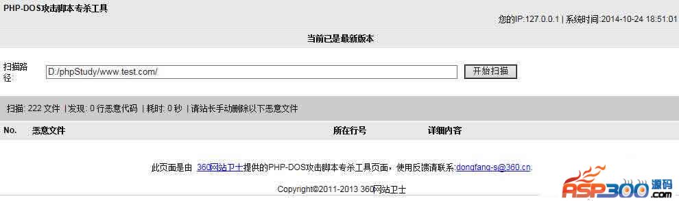 该工具用于查杀网站上可能存在的DDOS恶意脚本。用户只需将该脚本上传并解压到网站根目录,即可通过浏览器访问轻松查杀恶意文件。用户名:360,密码:360 下载地址 下载地址已转移到新版网站,请点击左上角-首页,在新版网站搜索此套源码的标题进行下载。