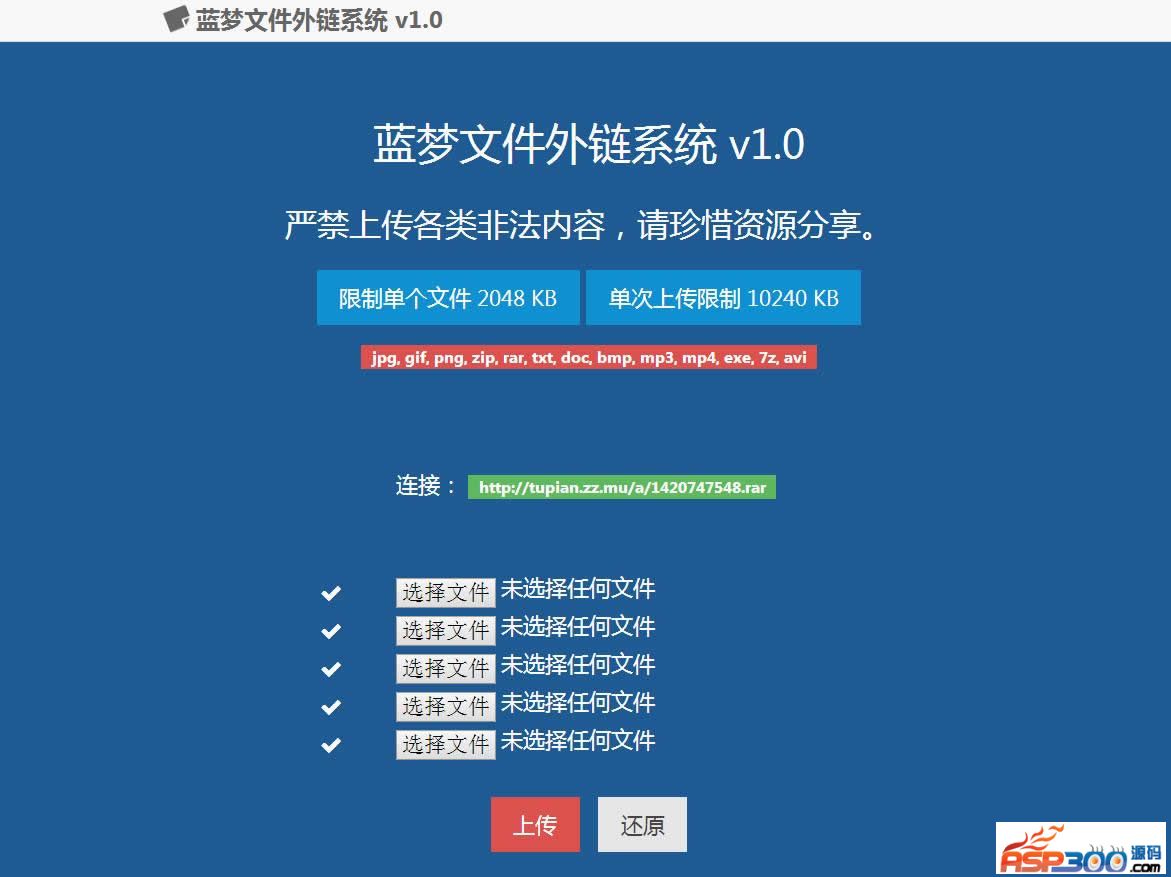 蓝梦文件外链系统1.0蓝梦文件外链系统是一款php简单的上传下载系统,使用html5设计美观,可以自行设置css缓存,即使是单php也可以完成上传外链的工作。