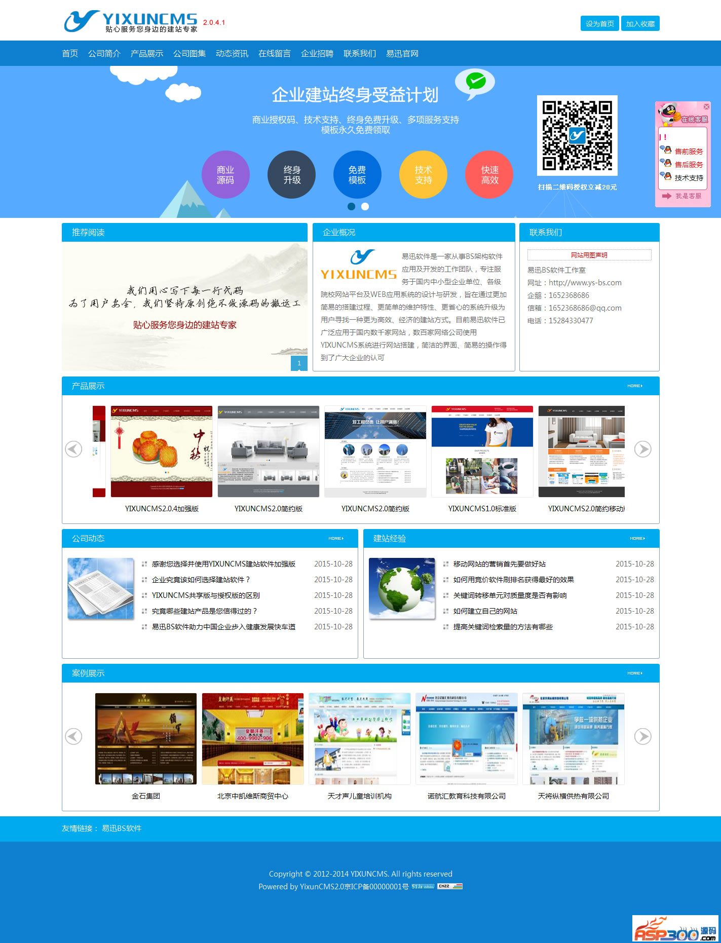 YIXUNCMS网站建设系统是由易迅软件工作室专为中小型企业开发的一套展示类网站系统,采用目前流行的PHP语言并搭配性能稳定的MYSQL数据库,前后推出了“YIXUNCMS