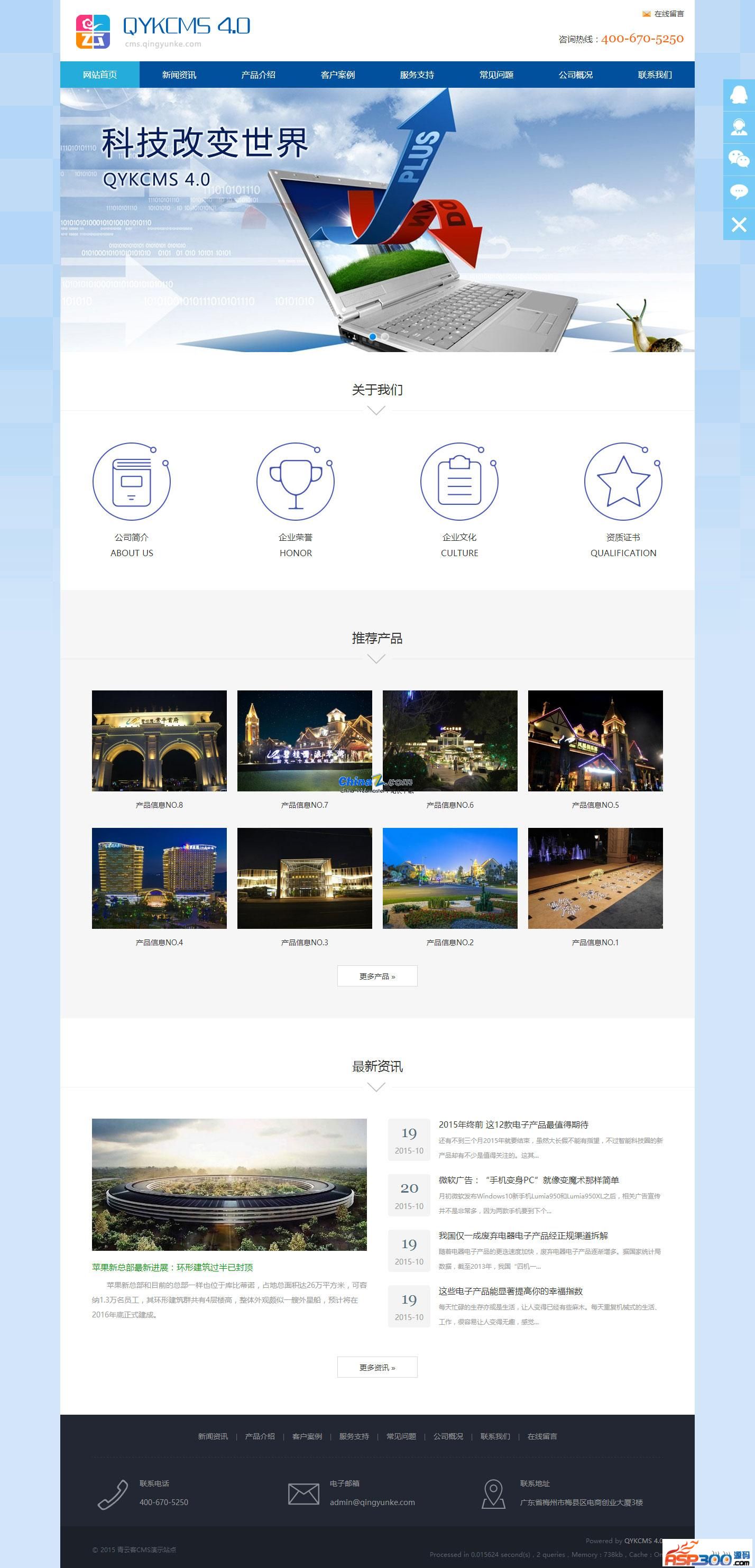 QYKCMS 4.2.9至4.3.0更新说明:1、修正部分浏览器屏蔽幻灯片广告图片的问题2、修正搜索标签将隐藏分类也列入搜索的问题3、完善搜索标签,新增sel及width参数,示例 {:search="news,help",sel=true,width=500}4、修正开启静态缓存,设置的时间有效期不准确的问题5、新增专题功能,调用标签 {:special},详见官方博客标签大全6、文章赞一下功能增加点击限制,后台可关闭,后台支持手动设置各选项值7、忧化数据库读取过程,减少数据库读取次数8、新增禁用删除站点设置、站点访问状态设置9、修正部分PHP环境无法安装或无法进行环境检测的问题10、修正开启伪静态时,评论或留言无法翻页的问题11、修正因域名中包含“-”符号导致无法上传图片的问题12、新增批量导入功能,支持直接指定本机文件夹13、修正上一篇、下一篇文章的排序方式14、修正执行系统升级后不重新登录会定时自动跳转到欢迎界面的问题15、新增执行系统升级后显示更新日志16、后台域名绑定备案号调整为非必填项,支持绑定IP