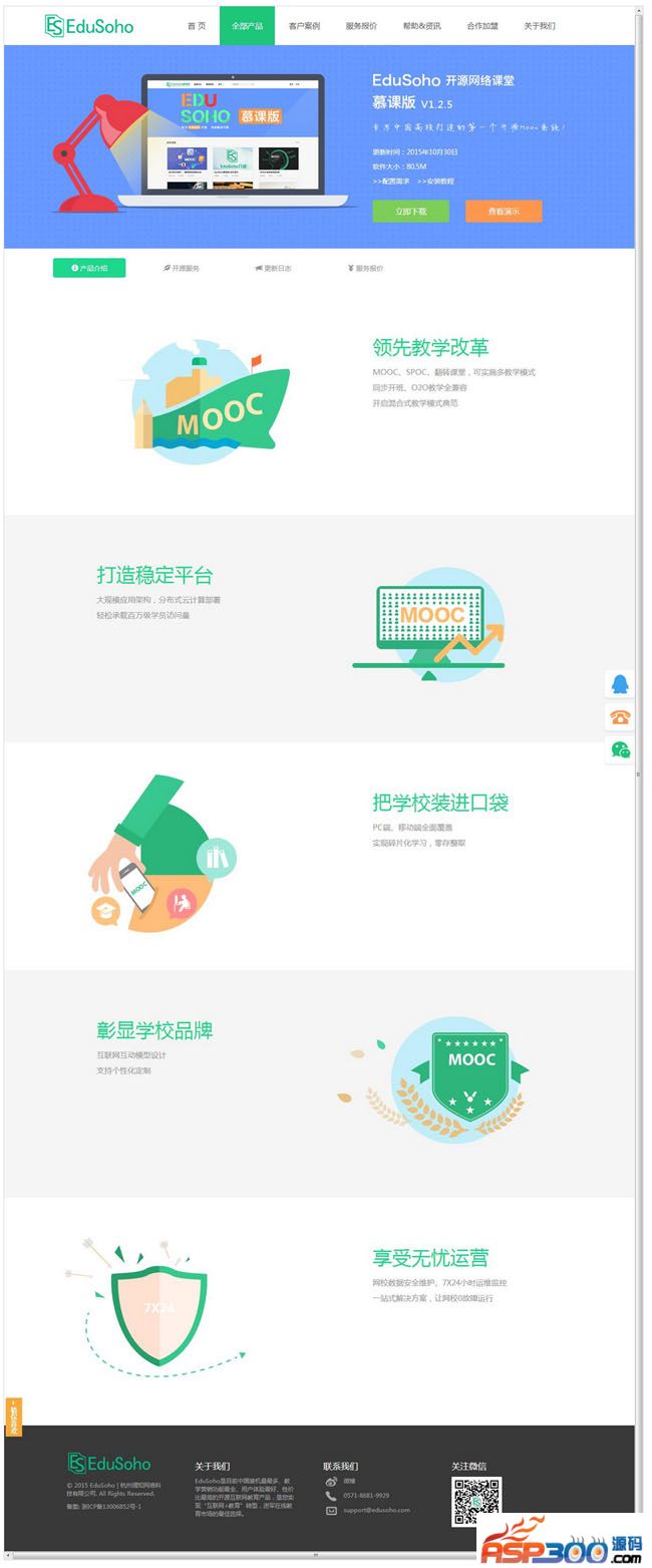 EduSoho开源网络课堂是阔知自主研发的开源在线教学平台,它不仅拥有丰富的教学互动、社区化学习体验,支持课程共享、学分互认、教务对接的开放产品架构,同时结合云计算和教育大数据技术,更可轻松应对百万师生的在线教学与学习。