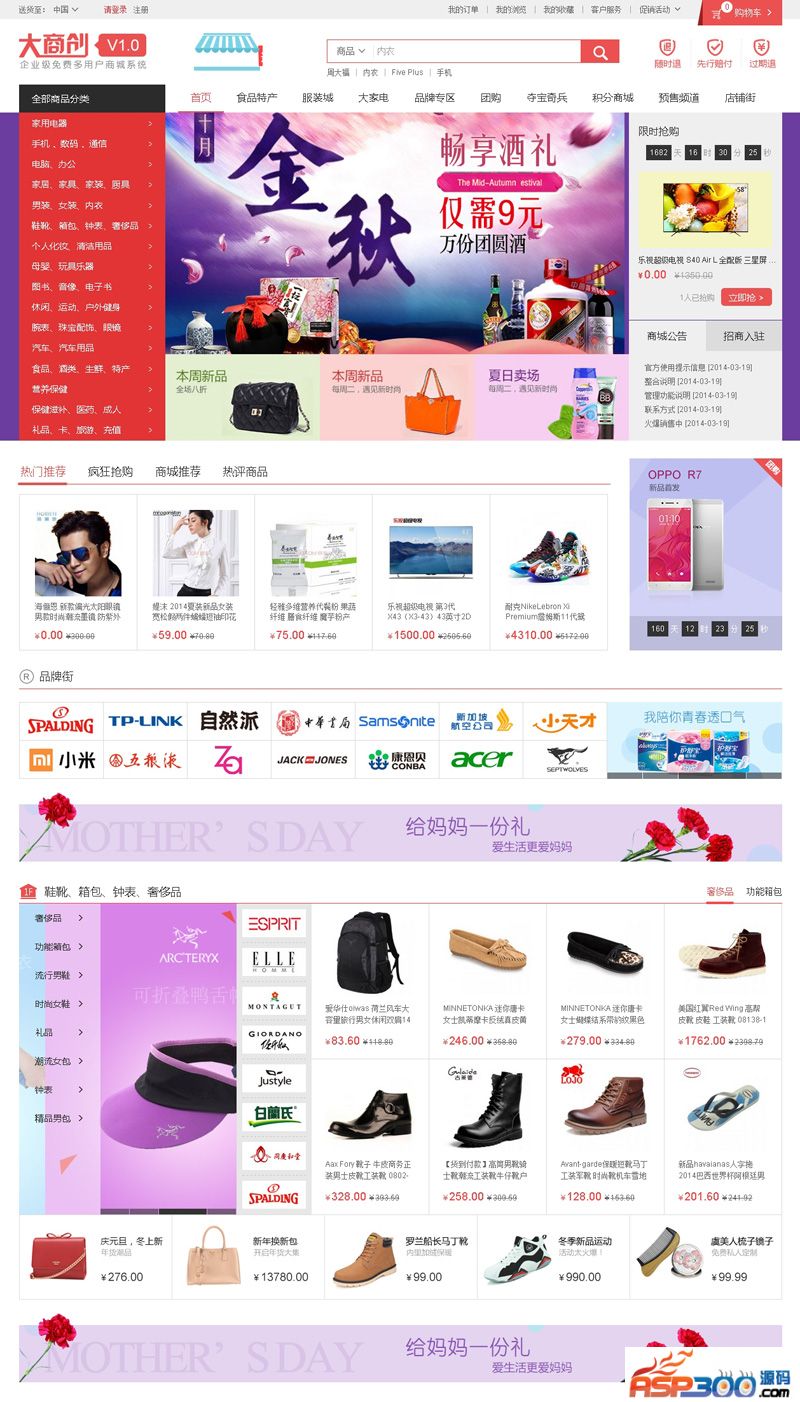 大商创1.3——2016年最新发布b2b2c多用户商城系统,性能卓越,视觉体验更佳,完美超越现在市面上的b2b2c多用户商城系统!包含PC+WAP端。整合了众多核心功能,产品体验方面达到了行业最高水准,让用户轻松享受顶级电商系统中的所有强悍功能。
