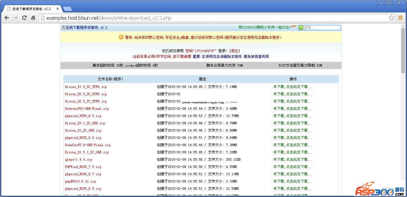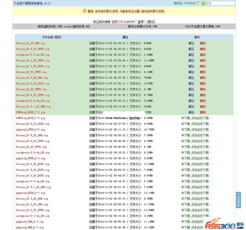 在线下载程序安装包可以很方便在服务器端下载各种程序安装包(Discuz!、phpwind、Dedecms、WordPress....等一些常用程序)并存储在服务器,大大减少站长上传程序安装包时间。