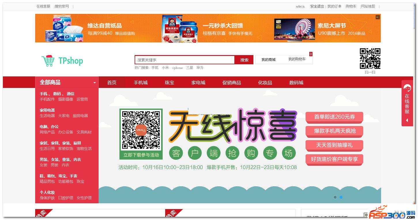 TPshop商城( Thinkphp shop的简称 )B2C 和 B2B2C商城免费开源网站源码。