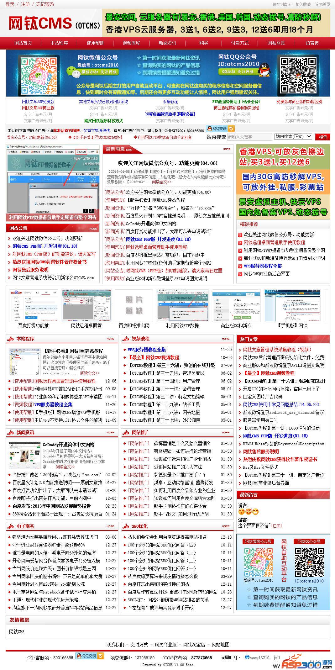 网钛CMS(OTCMS)PHP版以简单、实用、傻瓜式操作而闻名,无论在功能,人性化,还是易用性方面,都有了长足的发展,网钛CMS的主要目标用户锁定在中小型网站站长,让那些对网络不是很熟悉,对网站建设不是很懂又想做网站的人能很快搭建起一个功能实用又强大,操作人性又易用。